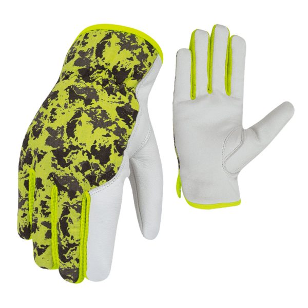 The Mecrex MR-6212 is where safety meets style. This short-cuff utility glove features a premium White Top-Grain Leather palm for superior durability and tactile feel. The back of the hand is constructed from breathable fabric showcasing an electric Neon Yellow & Black Abstract Camouflage print. With matching Neon Yellow finger sidewalls and binding, this glove is designed to be seen, making it an excellent choice for professional landscaping teams and roadside maintenance.