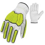The Mecrex MR-1013 is the workhorse of the impact series. It combines the traditional comfort of a White Grain Leather driver’s glove with a robust Black & Orange TPR impact system. Designed for general construction and logistics, it offers reliable back-of-hand protection while maintaining the soft, flexible feel of unlined leather that workers love.