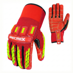 The Mecrex MR-1055 is a heavy-duty synthetic glove designed for maximum visibility and grip in wet or slick conditions. It features a lightweight Safety Yellow Spandex Chassis paired with a specialized Red Textured “Sand-Grip” Palm. This combination offers the dexterity of a mechanic glove with the rough, non-slip performance needed for handling oily pipes, wet lumber, and drilling equipment.