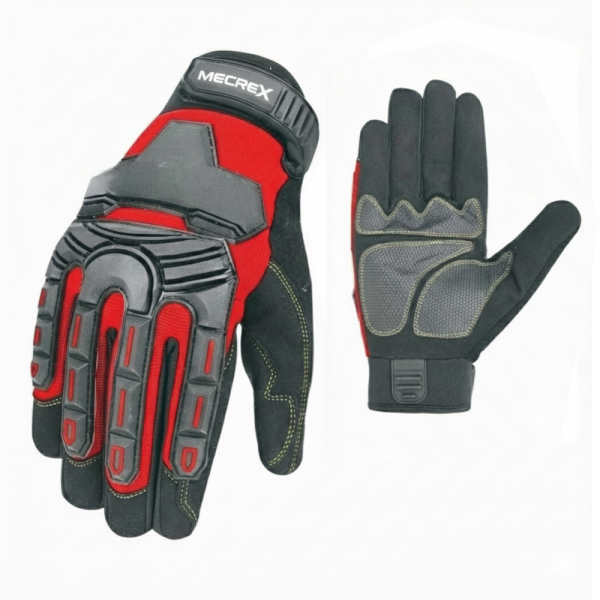 The Mecrex MR-1217 is a premium industrial glove that balances high-impact protection with a sophisticated, dirt-hiding aesthetic. It features a heavy-duty crimson red and black shell with a specialized “Shield-Plate” knuckle system, making it ideal for users who need a high-friction grip and extreme durability in dry or dusty conditions.